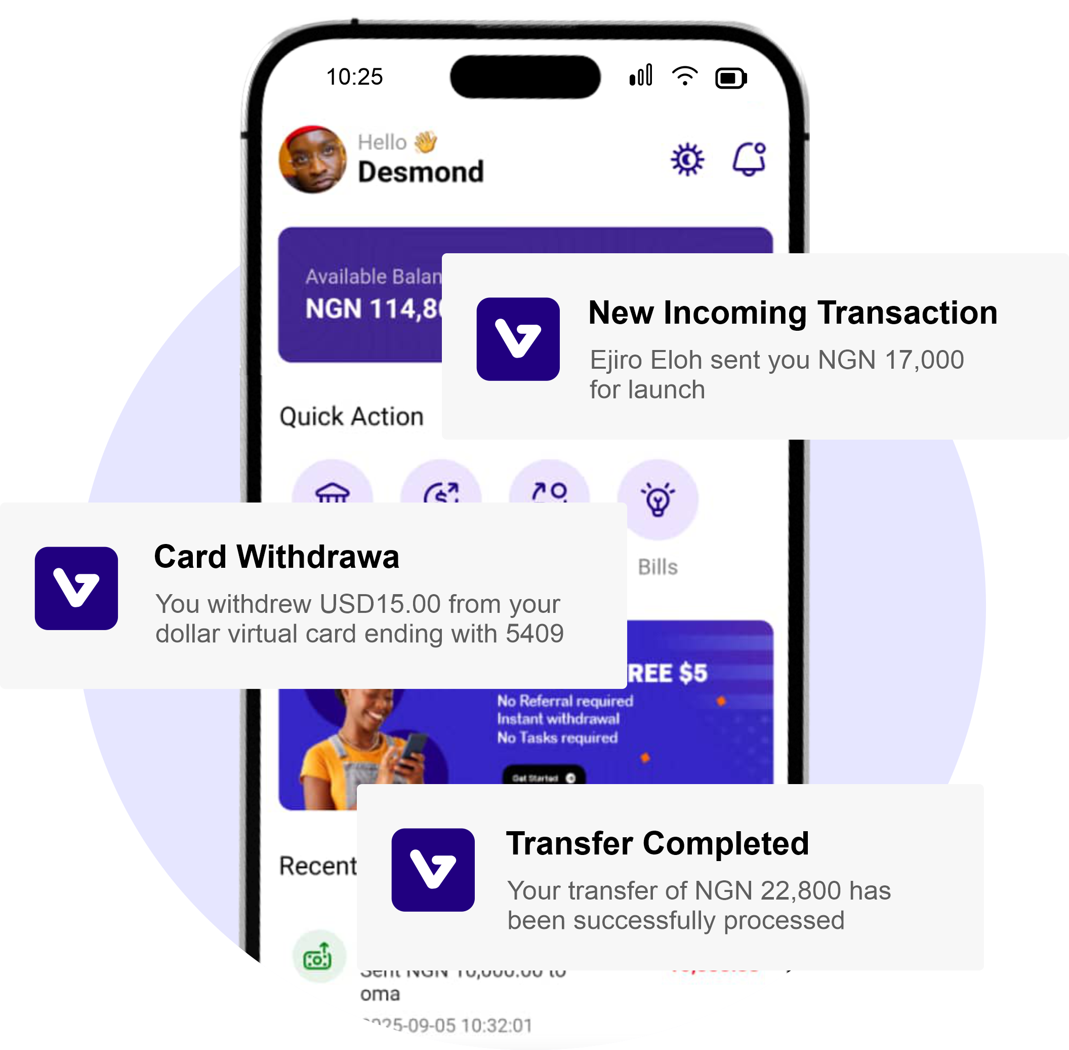Get instant alerts for every payment, transfer, and deposit — so you’re always in control of your money.