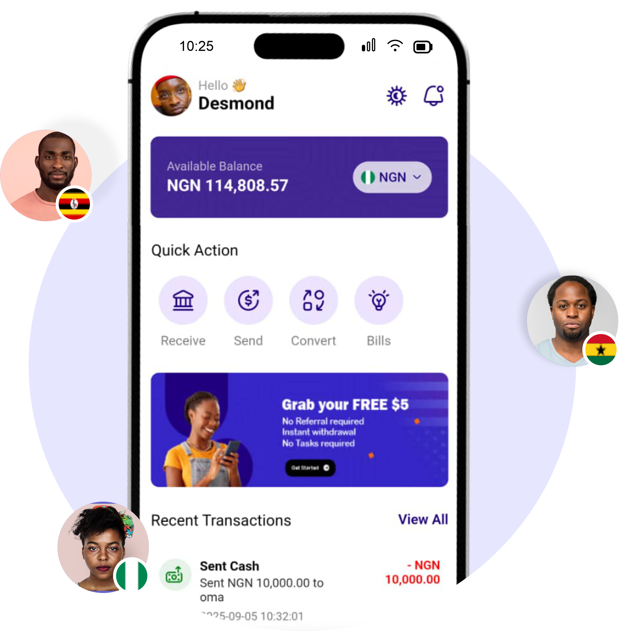 Send and receive money in minutes across different currencies and countries