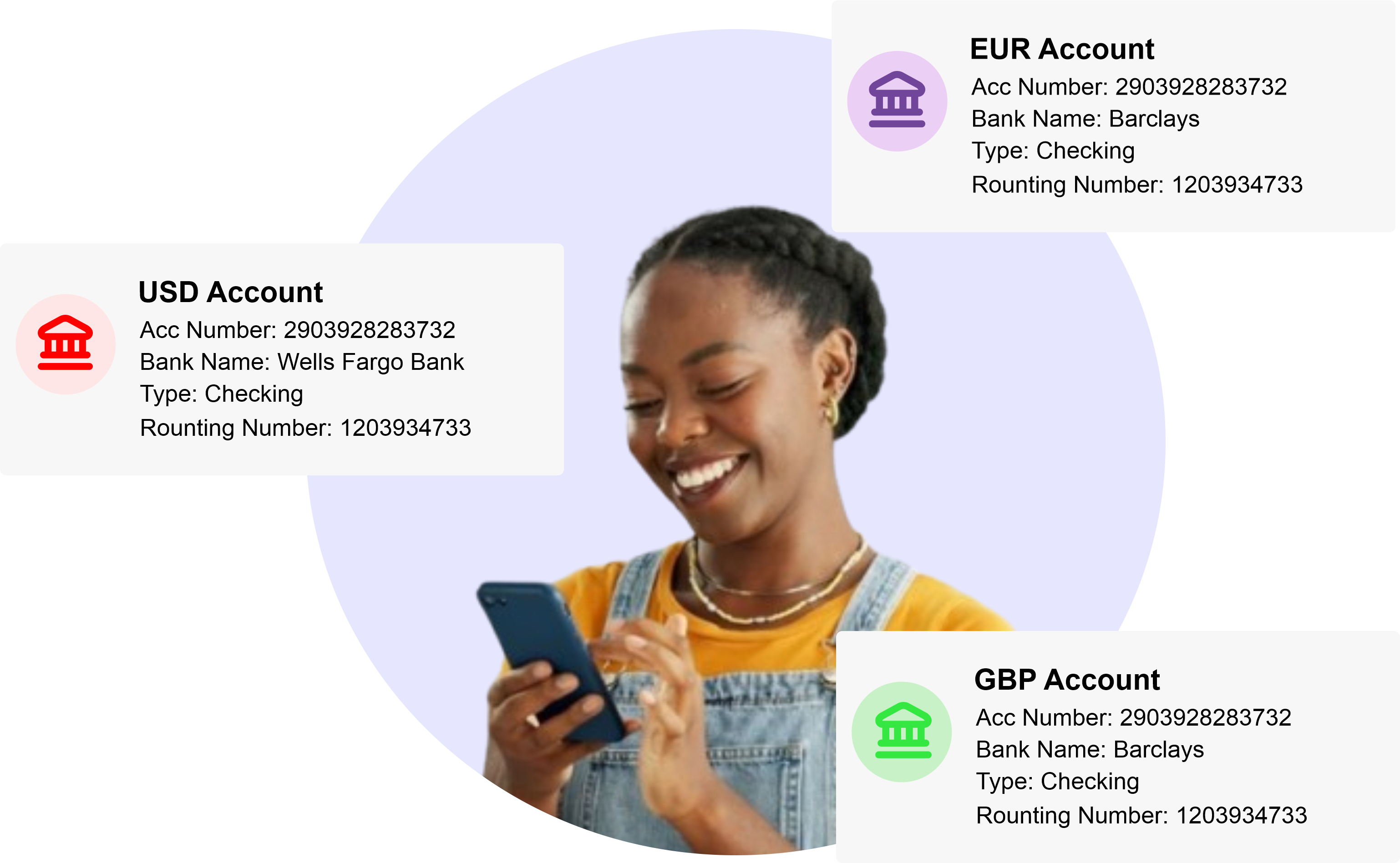 Open USD, GBP, EUR, and CAD accounts in minutes and start receiving international payments with ease. Whether you’re freelancing, working remotely for global companies, or running your own business, we make it simple to get paid directly in the currency that suits you best. No hidden fees, no long delays — just fast, secure, and reliable cross-border payments designed for modern professionals.